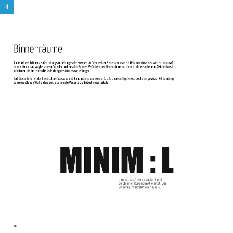 Wenn man Schrift in ihre Einzelteile zerlegt, was bleibt dann übrig? Und was passiert, wenn man Buchstaben in ihre Einzelteile zerlegt? Dieses Puzzel in seinen Variationen zu verstehen, war die Aufgabe der Studierenden im Wintersemester 2013/ 2014. Bestimmte Bestandteile machen Schriftzeichen aus, doch manche Formen, Leerräume oder Kurven kann man eventuell weglassen. Warum braucht man Serifen nur für Print, jedoch nicht für Webfonts und was macht ein Wort oder eine Schrift besonders gut lesbar?