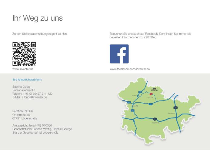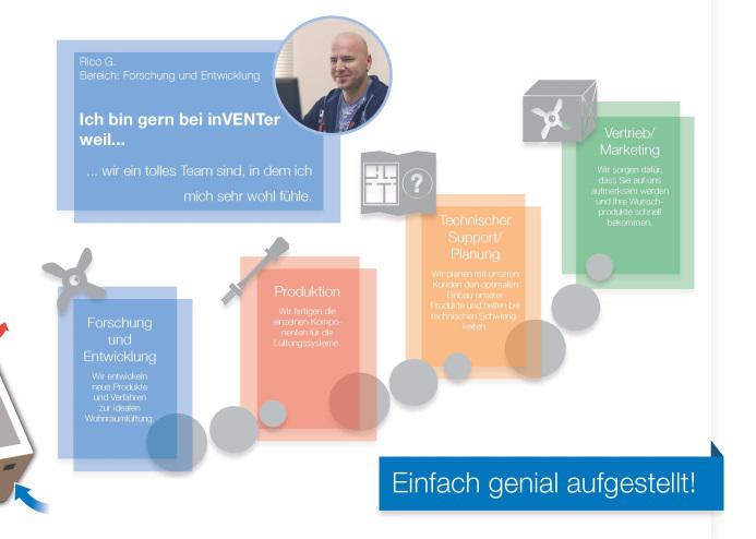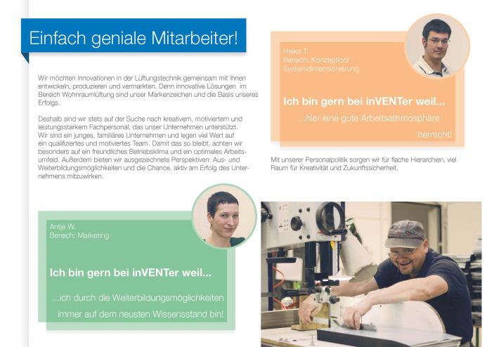 Das Ergebnis ist eine 8-seitige Bewerberbroschüre, in der Wert auf effiziente Informationsaufnahme durch wohlgeformte Texte und ansprechende Visualisierungen gelegt wurde. Nach der Präsentation am 10. März 2015 hat inVENTer die Broschüre mit einer Auflage von 1000 Exemplaren in den Druck gegeben, um sie z.B. auf Kontaktmessen zu verwenden.