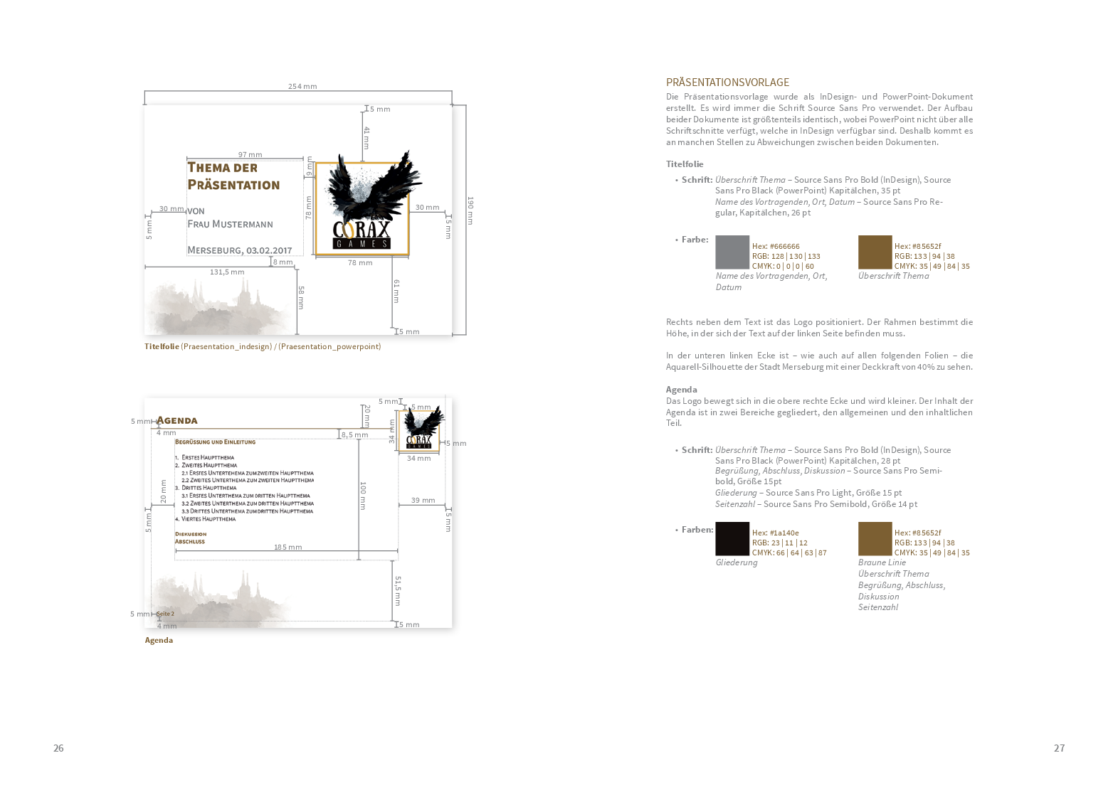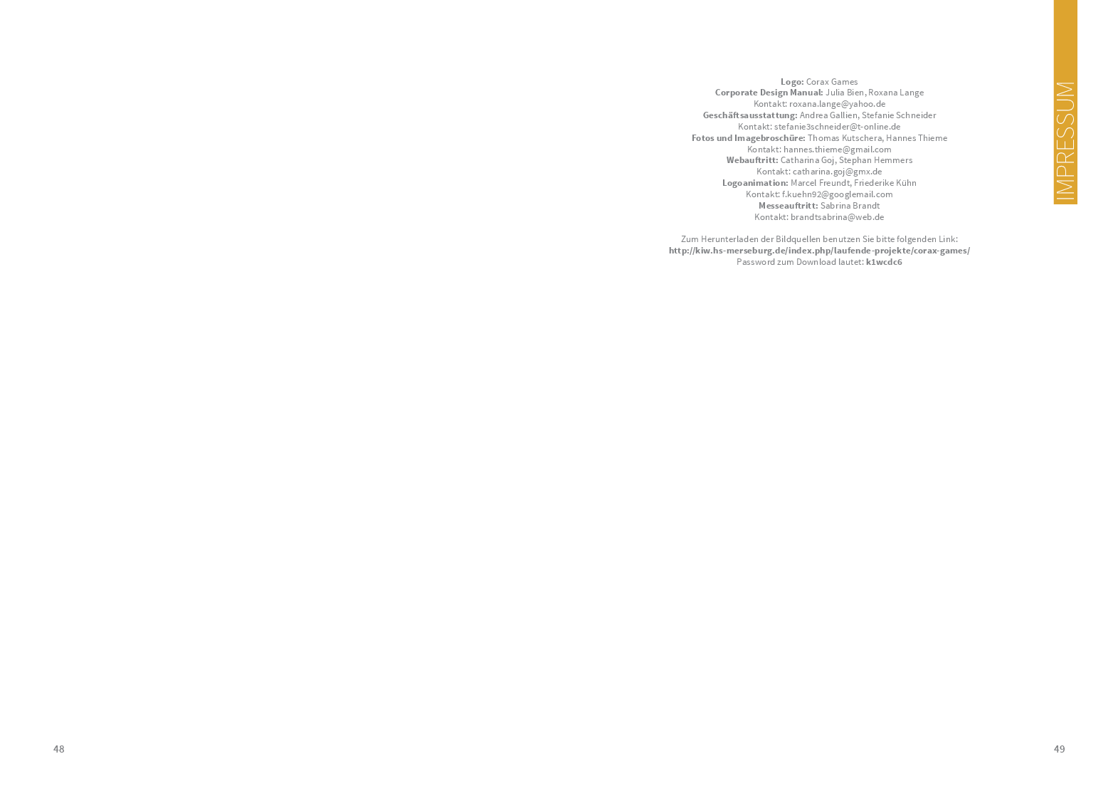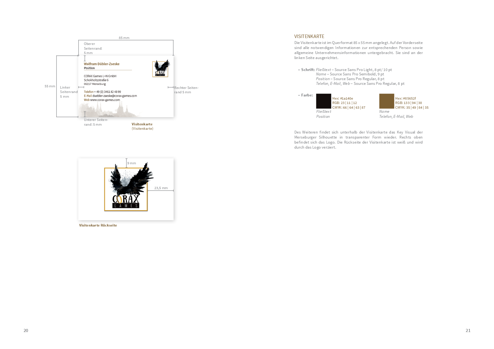 Um von jedem Stakeholder gut wahrgenommen zu werden, braucht es auch hier ein gut strukturiertes Corporate Design. Das Logo, welches sich stark auf die Merseburger Rabensage bezieht, zusammen mit den verwendeten Schriften und Farben wurde den Studierenden als Grundstein bereits vorgegeben. Anhand dessen konzipierten sie – im Rahmen des Moduls ‚Corporate Design‘ – ein Manual, das als ein Regelwerk für unterschiedliche Medien und Gestaltungselemente dient. In enger Zusammenarbeit mit dem Verlag sind somit viele unterschiedliche und kreative Ideen in das Projekt hineingeflossen, was den Prozess umso spannender und lehrreicher für die Studierenden gestaltet hat.