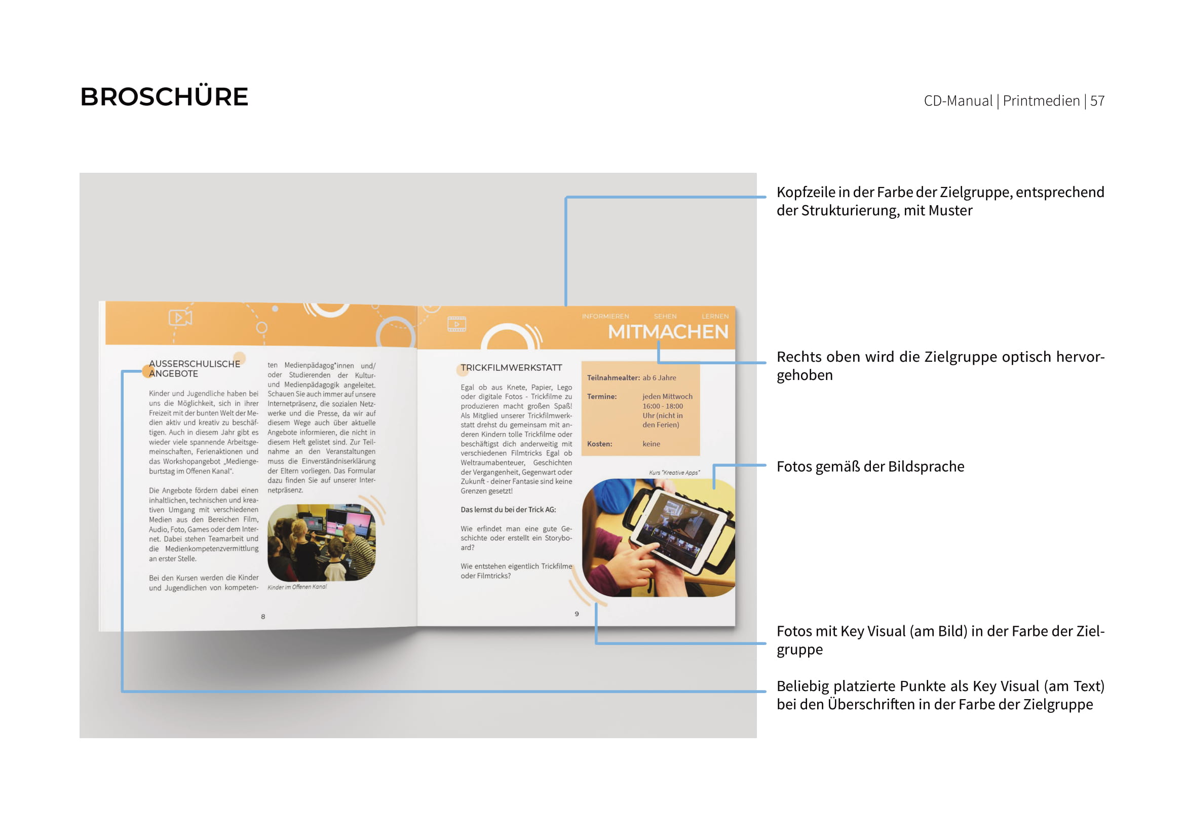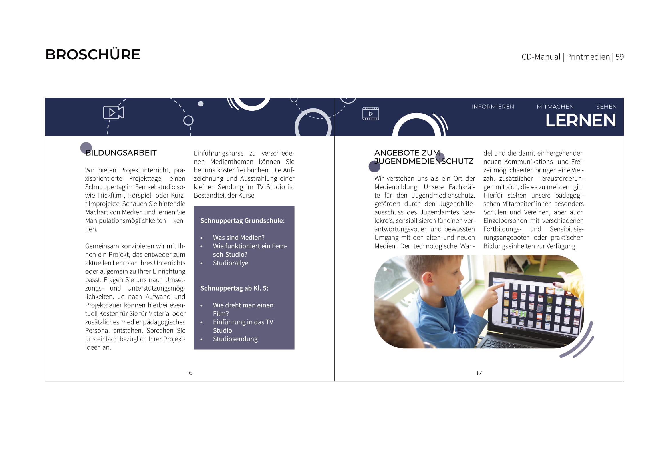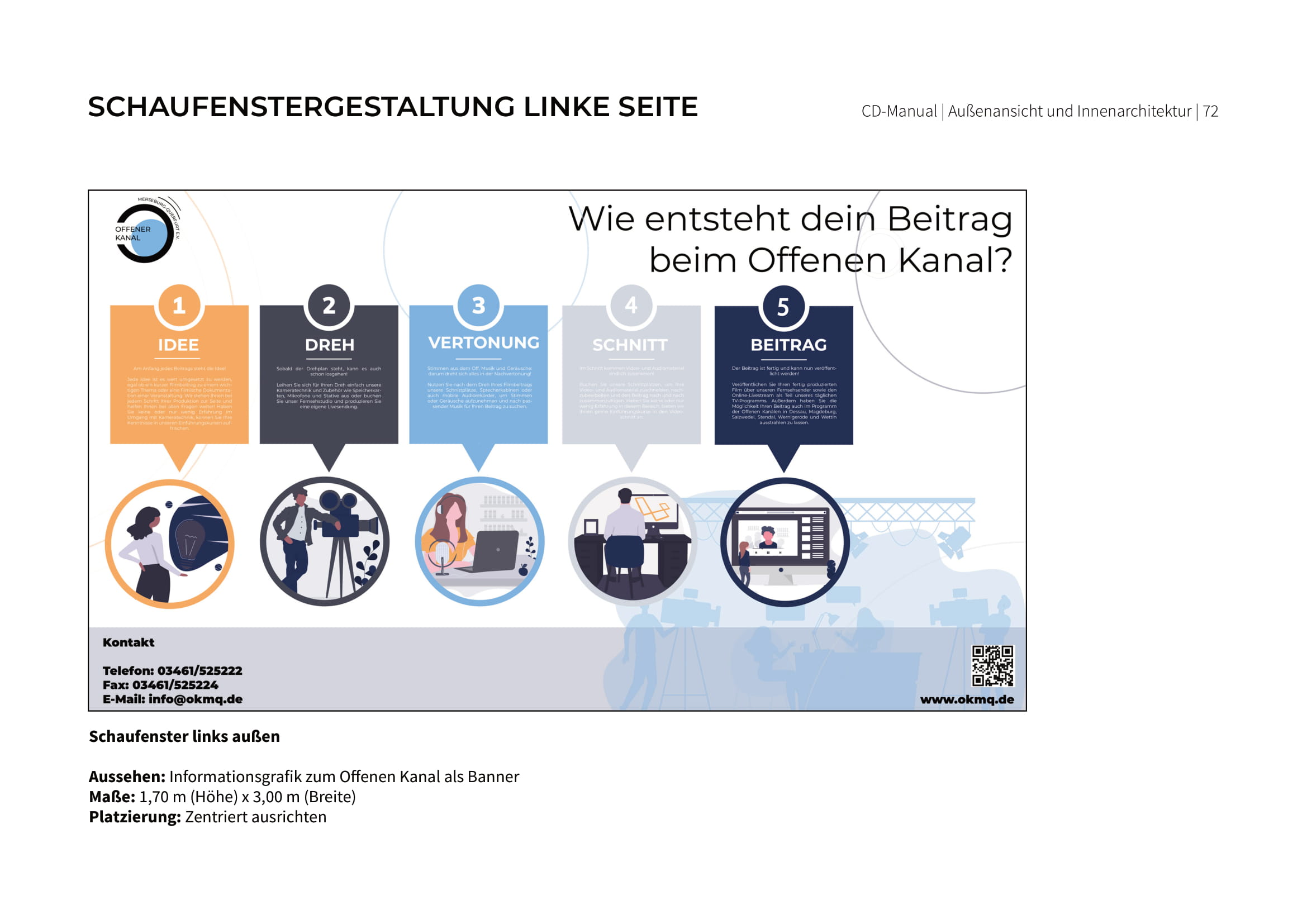 Alle Regeln zur Umsetzung sowie die Ergebnisse der einzelnen Gruppen sind in einem Corporate Design Manual festgehalten. Dieses wurde zum Abschluss dem Offenen Kanal Merseburg-Querfurt e.V. präsentiert und übereicht. Wir hoffen, dass wir dem Verein die nötigen kreativen Impulse sowie neue Sichtweisen an die Hand geben konnten und sind gespannt, welche Ideen in die Tat umgesetzt werden.