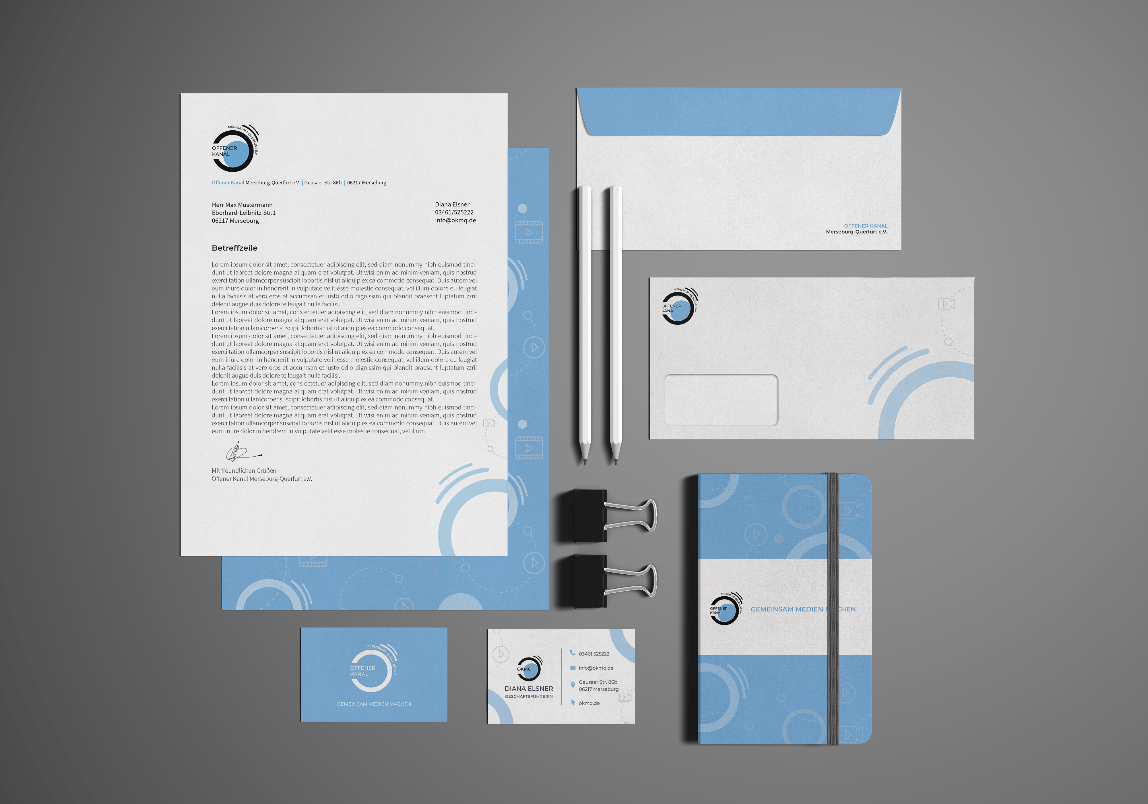 Im Rahmen des Moduls Corporate Design unter der Leitung von Prof. Kerstin Alexander kreierten die Studierenden des Masterstudiengangs Informationsdesign und Medienmanagement ein neues Corporate Design für den Offenen Kanal Merseburg-Querfurt e.V.