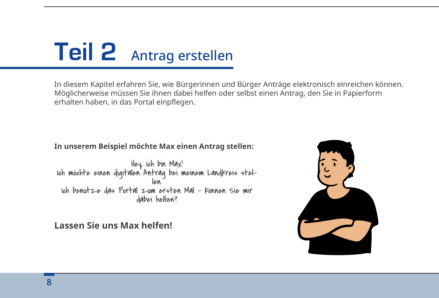 Projektpartner für das zweite Thema war die brainSCC GmbH, ein Softwareunternehmen aus Merseburg, das Portallösungen für die Digitalisierung von Verwaltungsprozessen in Kommunen und Stadtverwaltungen anbietet. In Gruppen erarbeiteten die Studierenden Anleitungen für Mitarbeiterinnen und Mitarbeiter in der Verwaltung, d.h. Personen, die die von Bürgern über das Portal gestellten Anträge bearbeiten, z. B. Baumfällgenehmigungen oder Förderanträge im Bereich Kultur und Sport. Die besondere Herausforderung in diesem Projekt bestand darin, das Anleitungskonzept modular und nach Bausteinprinzip zu gestalten. Da das Verwaltungsportal in jedem Projekt an die spezifischen Verwaltungsprozesse der Kunden angepasst wird, muss auch die begleitende Dokumentation anpassbar sein. Die Anleitungskonzepte der Projektgruppen sollten diese Anpassungen durch den Einsatz geeigneter Standardisierungsmethoden erleichtern und optimal unterstützen.