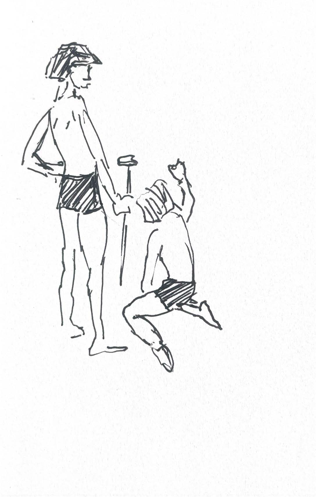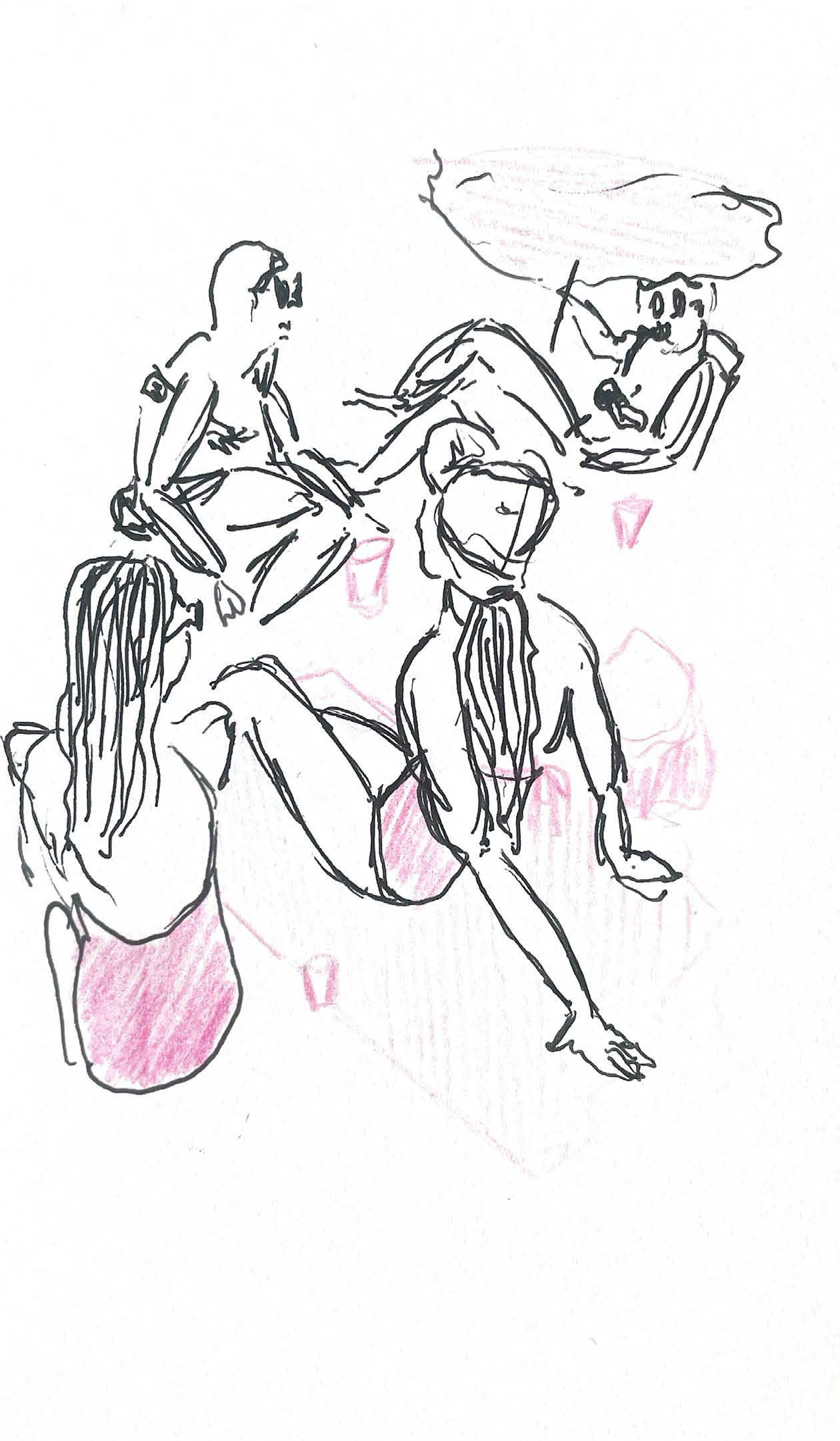 Zum Auftakt standen anatomische Grundlagen und Körperproportionen im Zentrum. Mithilfe ausgeschnittener Körperteile aus Karton setzten die Studierenden unterschiedliche Körperhaltungen zusammen. Diese Übung diente als Annäherung an die zeichnerische Erfassung von Proportion, Bewegung, Ausdruck und Balance. Im Anschluss wurde dieses Wissen durch gegenseitiges Zeichnen vertieft.